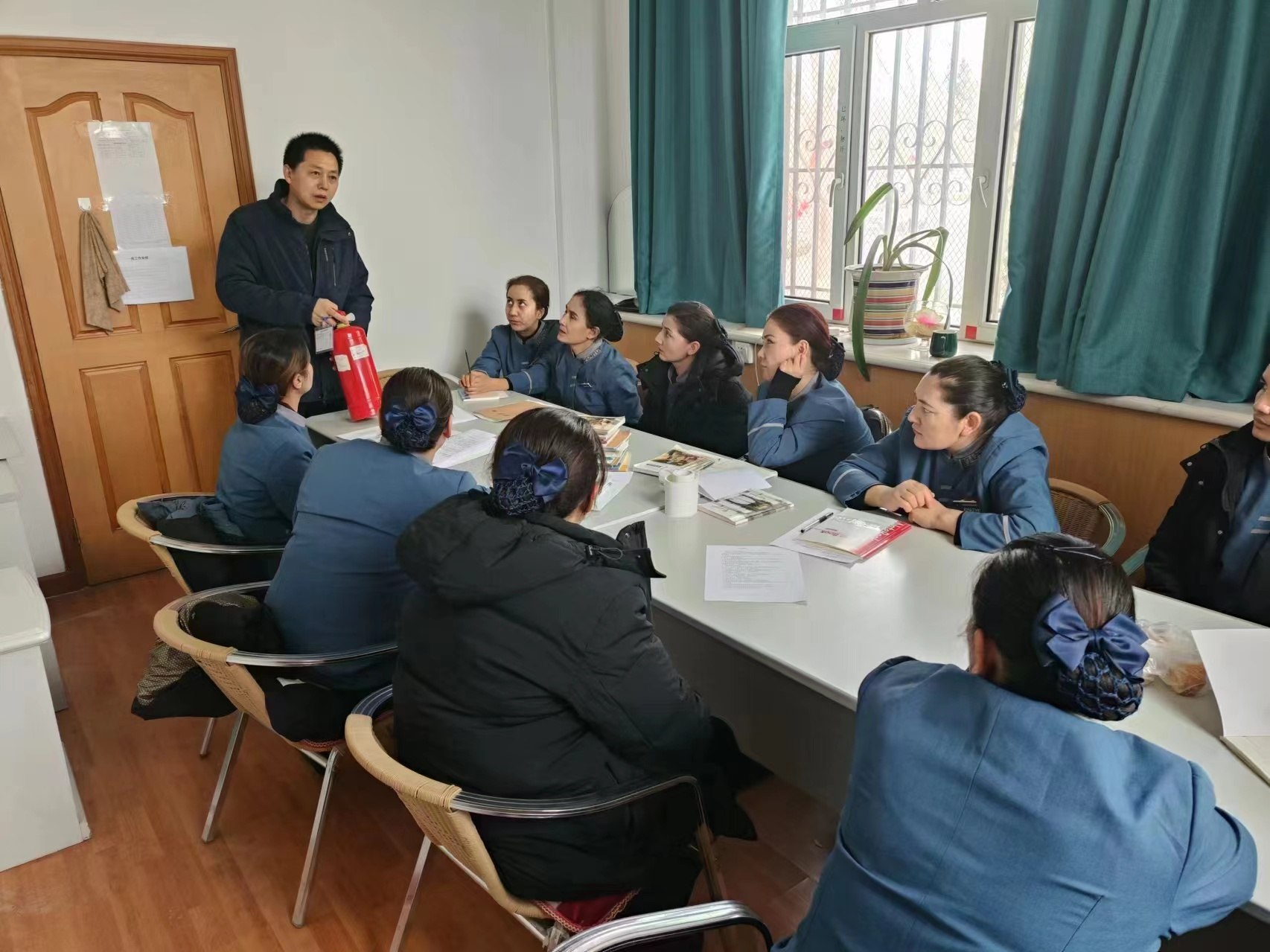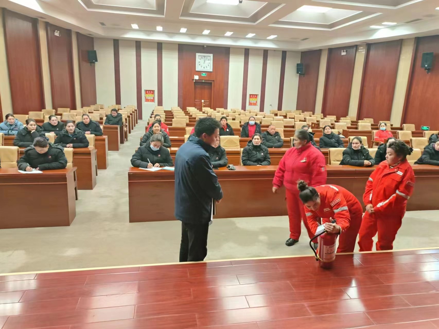本次灭火器使用培训分设两个片区,基地及阿克苏片区,项目部负责人通过对灭火器的种类、特性等各方面进行细致讲解,不同类型的灭火器适用于不同的火原,详细讲解各种灭火器的使用方法注意事项,最后着重讲解了在遇到火灾的时候,如何使用灭火器,并在现场让员工进行口述及操作。